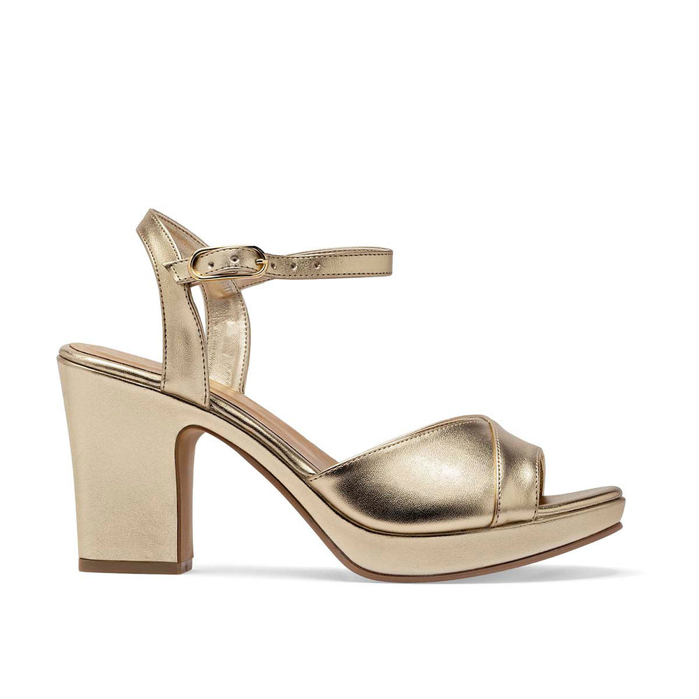 Zapatilla estilo boca de pescado con ajuste de correa al tobillo. Su altura de 9 cm es perfecta para dar estabilidad y un porte único al caminar