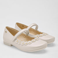 El blanco nacarado añade un toque de sofisticación, mientras que las hermosas flores decorativas, con perlas en su centro, aportan un encanto floral y femenino. Con la versatilidad de un sujetador de pliegue y despliegue, estos zapatos ofrecen comodidad personalizada y estilo a medida.