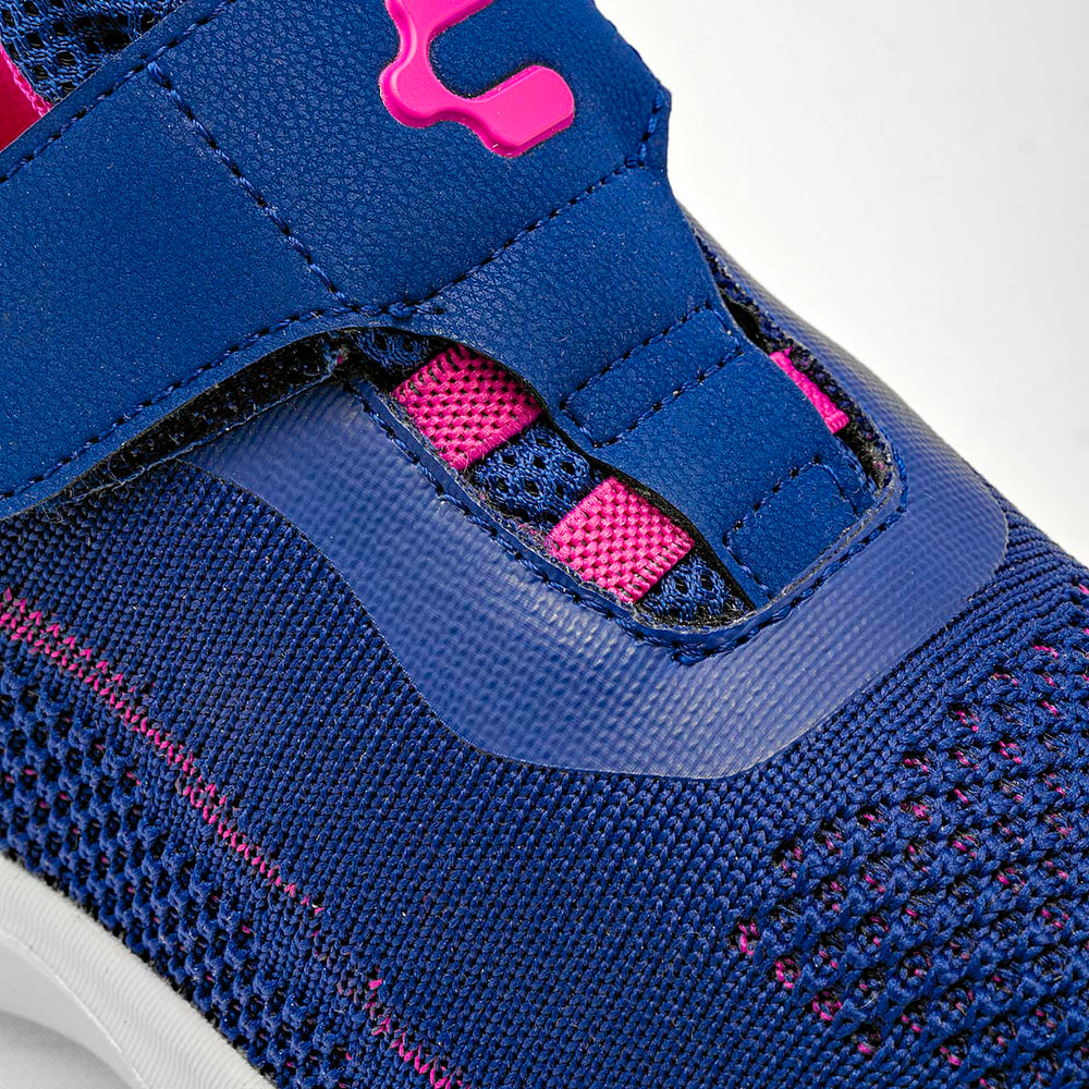 Estos tenis para niña combinan estilo y funcionalidad en un diseño atractivo y práctico. Confeccionados en un elegante color azul marino, destacan por sus vibrantes detalles en rosa que añaden un toque de dinamismo y modernidad. El ajuste con velcro garantiza una colocación r ¡pida y sencilla, proporcionando un ajuste seguro y cómodo para los pequeños más activos.