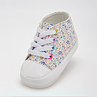 Estas encantadoras zapatillas de bebé son perfectas para los primeros pasos de tu pequeño. Con un diseño clásico de tenis, pero con un toque floral y colorido, son ideales para combinar con cualquier atuendo.