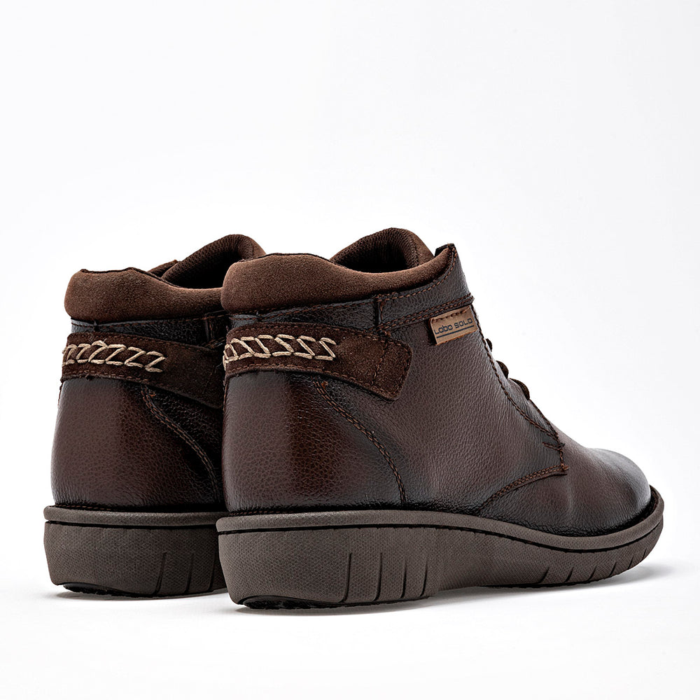 Se trata de un botín de caña baja con cierre de cordones, lo que permite un ajuste personalizado al pie. Una característica destacada es el cuello acolchado alrededor del tobillo, diseñado para ofrecer una mayor comodidad y reducir la fricción durante el uso prolongado. La suela es relativamente gruesa y flexible, lo que indica un enfoque en el confort y la absorción de impactos.