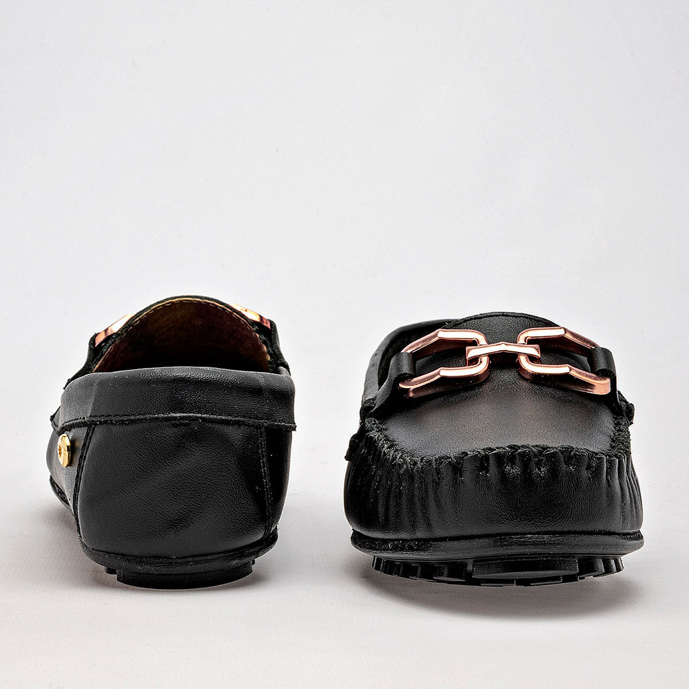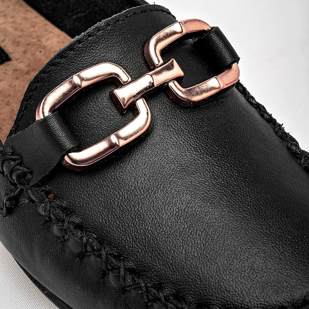 Elaborado con suave piel natural que ofrece durabilidad, transpirabilidad y una adaptabilidad superior al pie. En el empeine, luce un atractivo adorno metálico en tono oro con un diseño de doble eslabón entrelazado. Incorpora una suela de goma flexible y duradera que aseguran un excelente agarre y tracción, ideal para caminar con seguridad y confort en diversas superficies.