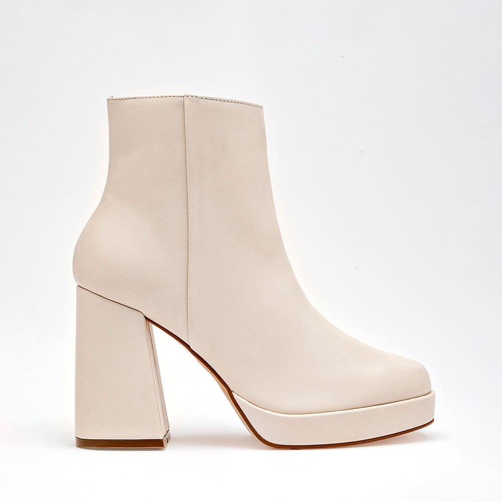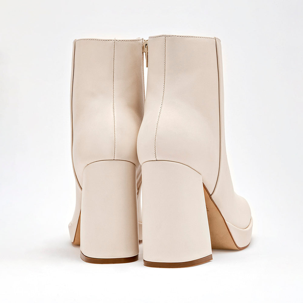 La silueta es contemporánea, con una punta cuadrada definida que está muy en tendencia, aportando un toque chic y audaz. Cuenta con un imponente tacón de bloque grueso de 10 cm, que proporciona una elevación significativa y una excelente estabilidad. Incorpora una plataforma delantera robusta, que ayuda a equilibrar la altura del tacón y a ofrecer mayor confort al caminar. Dispone de un cierre lateral para facilitar el calce y descalce.