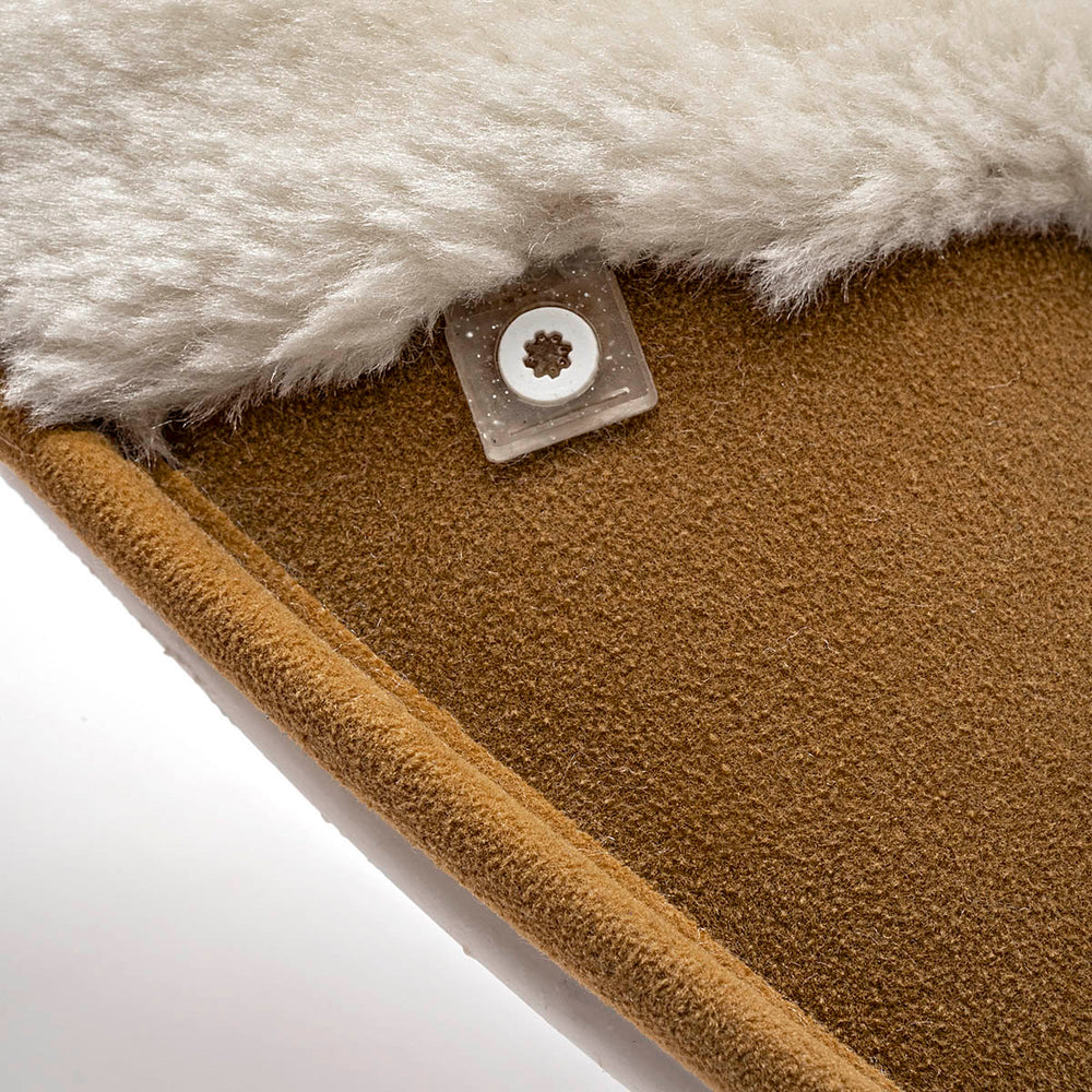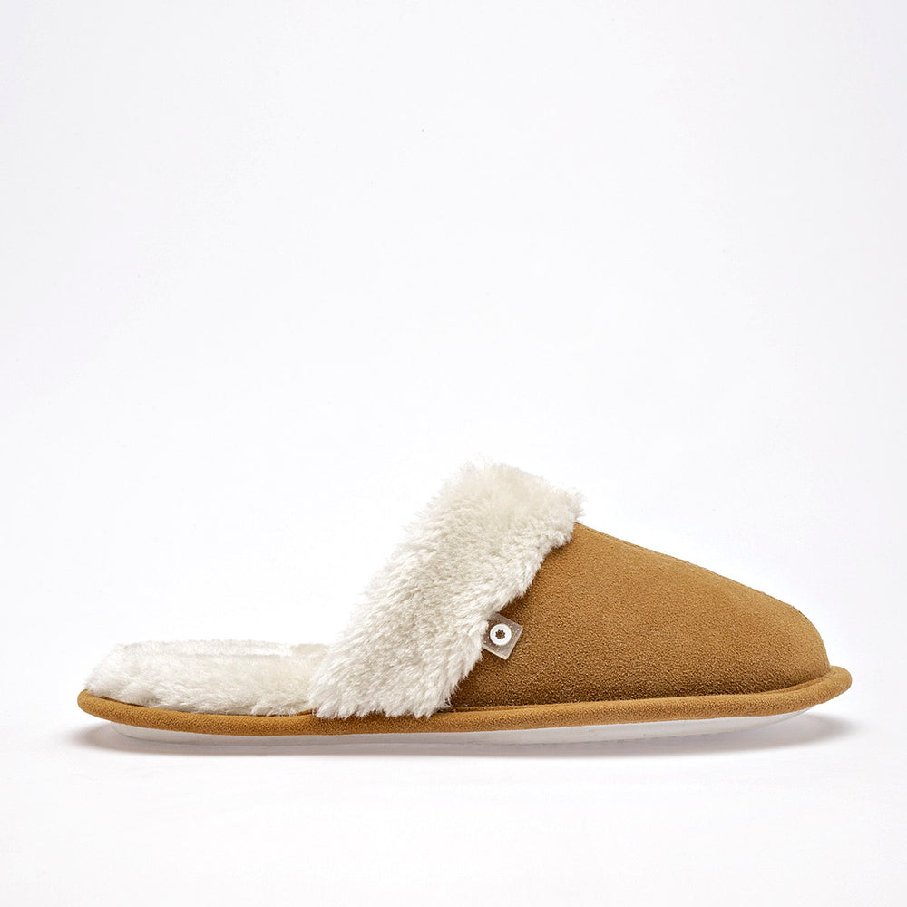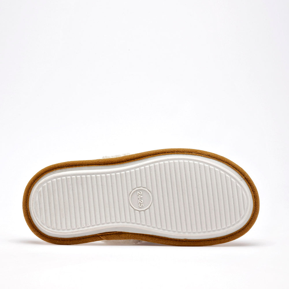 Fabricadas con un suave material tipo gamuza le da un aspecto sofisticado y duradero. El interior está revestido con un mullido y suave forro de borrego sintético en color crema. Este material no solo es increíblemente suave al tacto, sino que también proporciona una calidez excepcional, manteniendo tus pies cómodos y abrigados. La suela, delgada y flexible, está diseñada para ofrecer estabilidad en superficies interiores, permitiéndote moverte con seguridad por tu hogar.