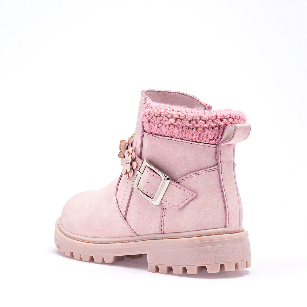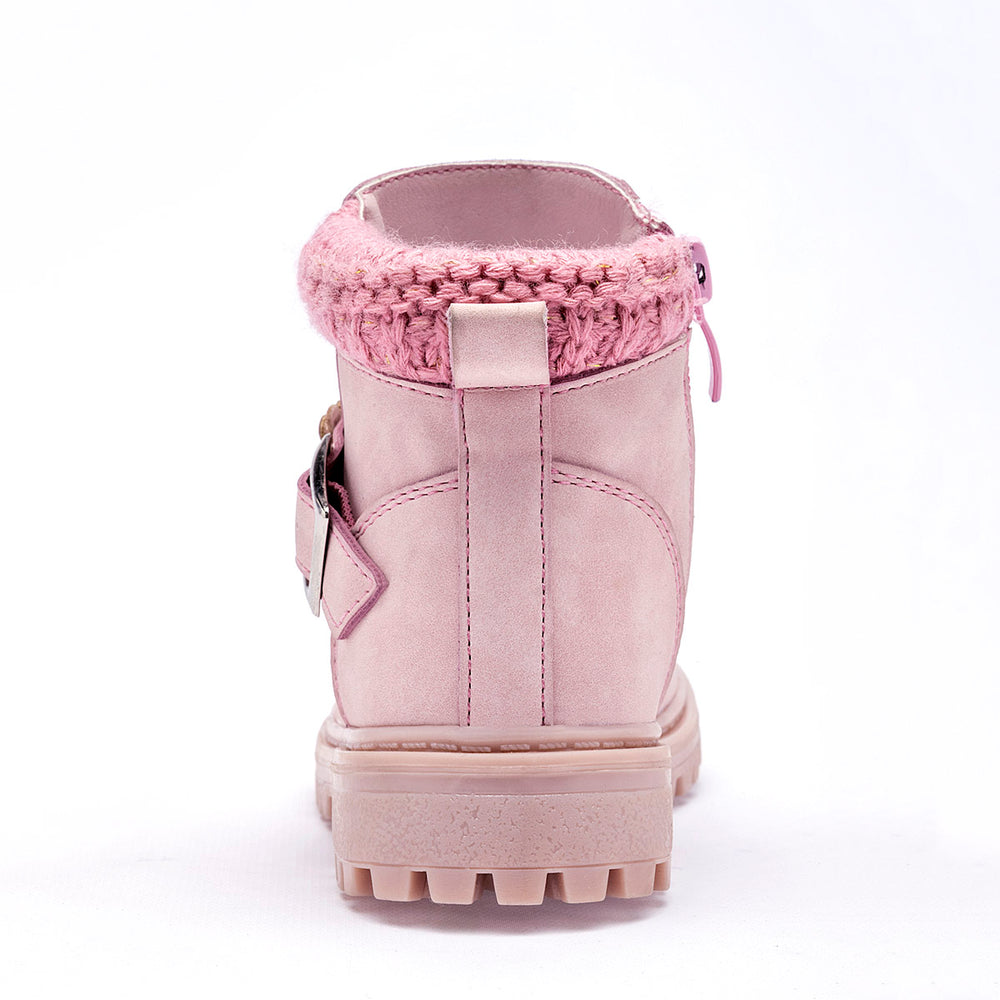 Tiene un acabado de gamuza o ante sintético. Cuenta con una cremallera lateral para que sea fácil de poner y quitar.