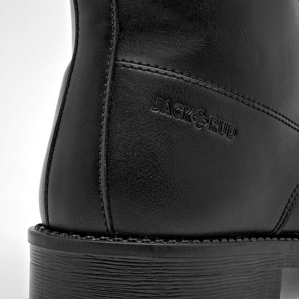 Está fabricado en un material sintético que le da un aspecto sofisticado. Las costuras dobles en color blanco crean un contraste que resalta el diseño, y la suela delgada ofrece un perfil más estilizado que las botas de trabajo más robustas.