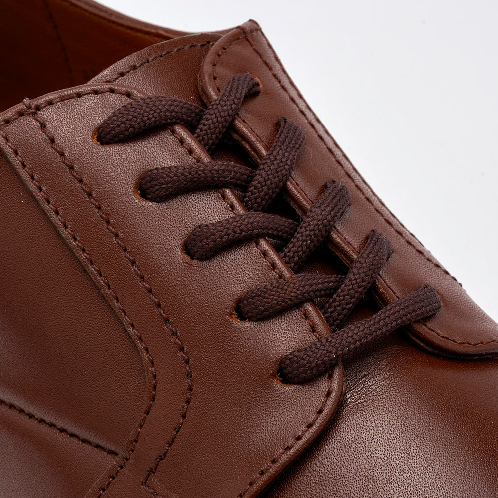 Elegante zapato fabricado en piel genuina de acabado liso. Su diseño se caracteriza por su sistema de cierre de cordones abiertos, que facilita un ajuste cómodo. La silueta es clásica y refinada, con una punta redondeada y costuras discretas que le dan un toque de distinción. La suela, es ligeramente gruesa y cuenta con un tacón bajo, ofreciendo estabilidad y confort para el uso prolongado. El interior está diseñado para ser suave y cómodo, ideal para el día a día.