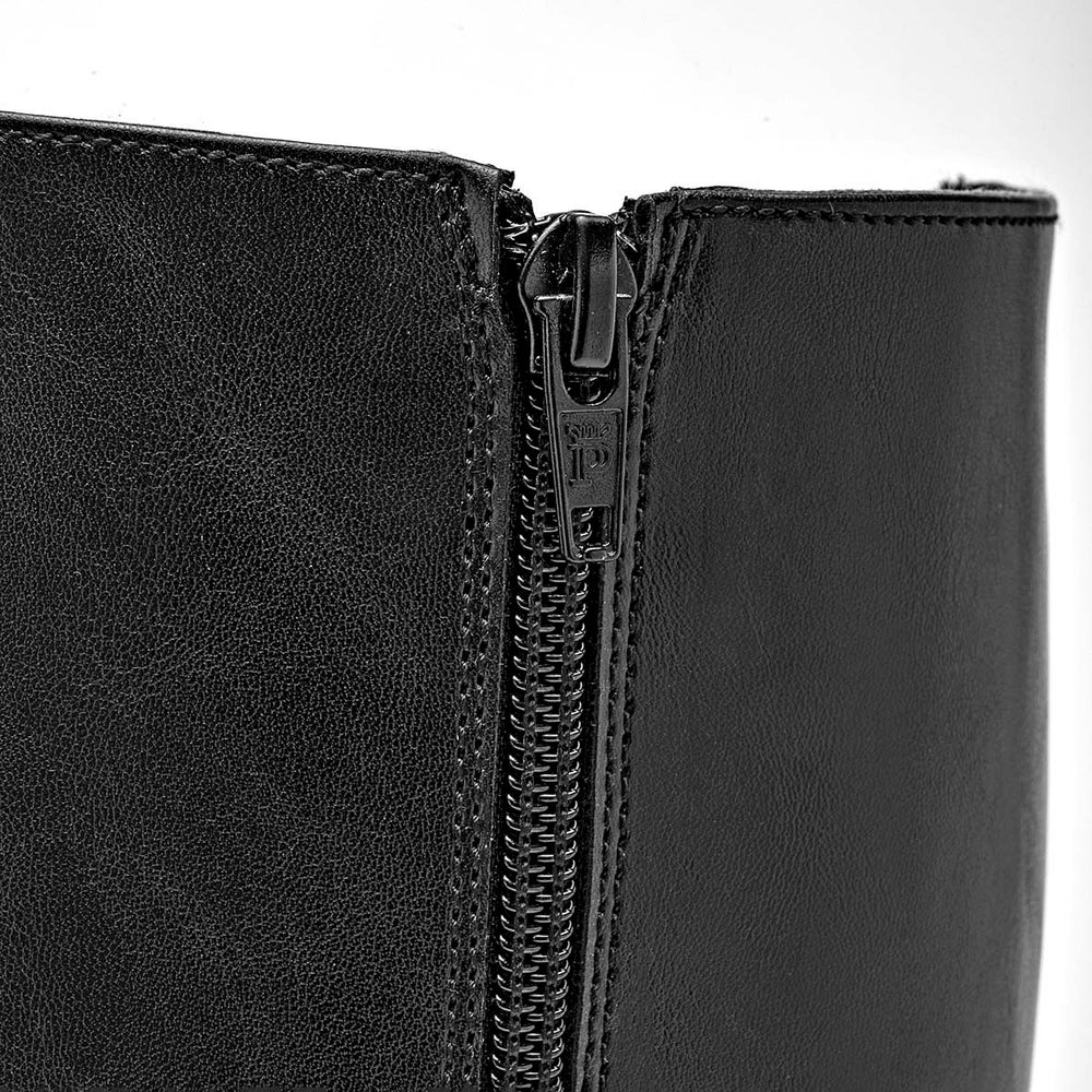 Estas botas de caña alta están confeccionadas en un material que imita la piel lisa de alta calidad, ofreciendo un look pulcro y sofisticado. Su tacón bajo de 3 cm y suela plana con un ligero relieve tipo track proporcionan una pisada estable y confortable, ideal para largas jornadas. El detalle distintivo es el cierre de cremallera metálica, lo que no solo facilita un calce impecable sino que también añade un toque moderno y elegante.