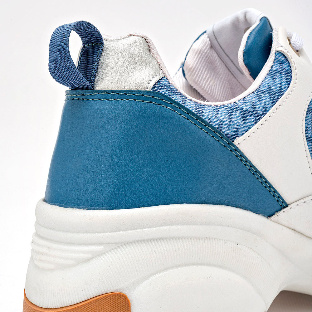 Redefine tu look con estos tenis de plataforma que son la última tendencia en moda urbana. Su audaz combinación de colores neutros y denim estampado los convierte en el centro de atención. La silueta chunky se complementa con una cómoda plataforma de 6 cm que te da la altura perfecta con el máximo confort.