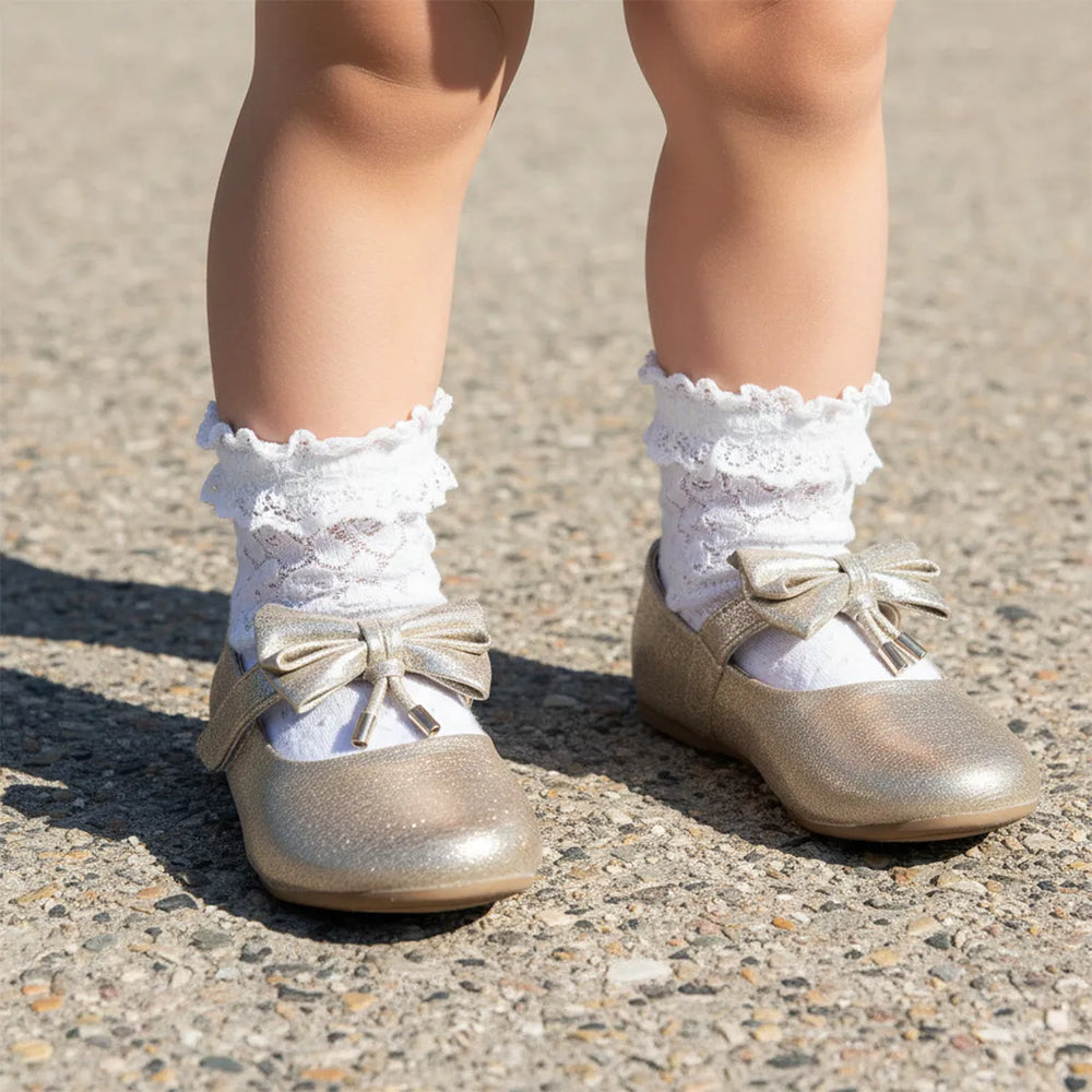 Zapato con pulsera de velcro. moño decorativo. Son cómodos y coquetos